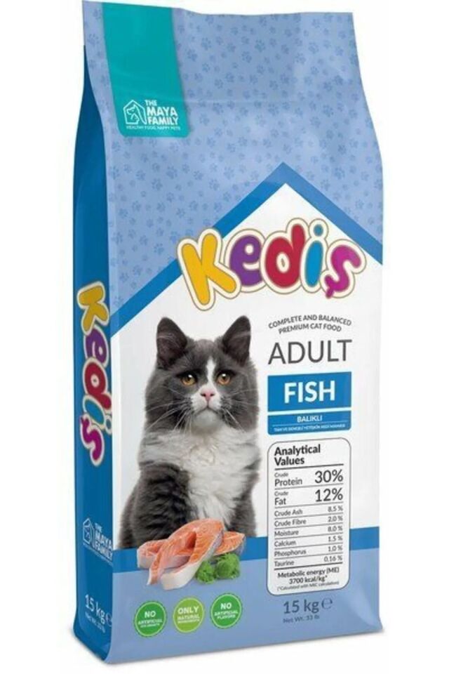 Kediş Yetişkin Kedi Maması Balıklı 15kg TYC00794165749 Yetişkin kediler için tam ve dengeli mamadır. İçindekiler: Kümes hayvanları unu, mısır, pirinç, et unu(dana eti), balık unu(%4), hayvansal/bitkisel yağ, hidrolize tavuk ciğeri, pancar küspesi, bezelye lifi, hindiba lifi, antioksidanlar(bitkisel yağ, bütillenmiş hidroksitoluen, mono- ve digliseritler, bütillenmiş hidroksiyanisol, sitrik asit) Besleyici İlaveler: A vitamini retinil asetat(25000 IU/Kg), D3 vitamini kolekalsiferol(700 IU/Kg), kalsiyum iyodat(1.5 mg/kg), demir(II) sülfat monohidrat (180 mg/kg), çinko sülfat monohidrat (60 mg/kg), mangan sülfat monohidrat (15mg/kg), bakır (II) sülfat pentahidrat (5 mg/kg), organik selenyum (0.05 mg/kg)